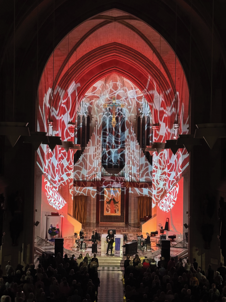 An artist himself with a background in architecture, Mech has been advocating for the diocese to bring a display to the cathedral similar to the Aura Project in Montréal. He sees it as a logical continuation of the church’s mission to support beauty, truth, and evangelization through the arts.